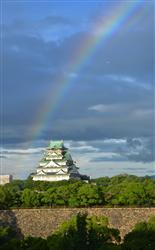 大阪城も 大空にかかる 美しい虹には かなわないですね。